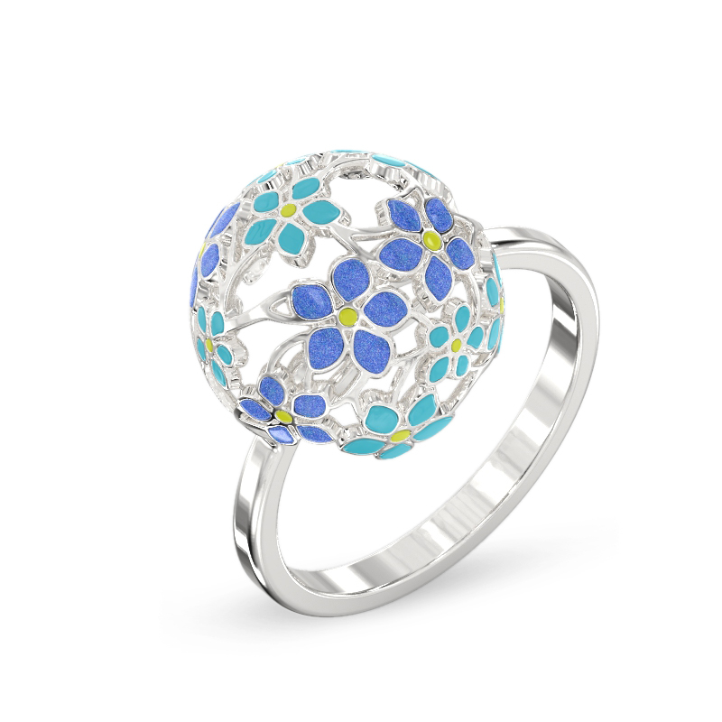 Anillo de No-me-olvides con esmalte de colores de plata 925. El anillo está chapado en rodio para realzar el brillo y la durabilidad de la plata.