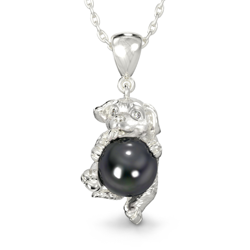 Colgante Perro Perdiguero con perla de plata 925. Puede elegir chapado en oro rosa o amarillo de 18 quilates para su colgante.