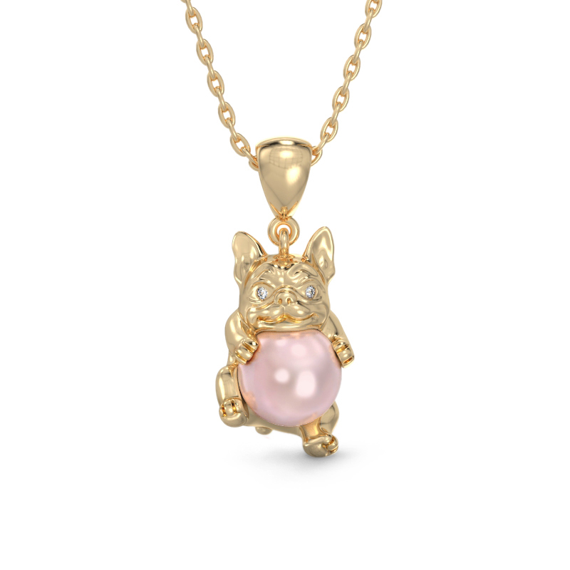 Silver Bulldog pendant with pearl from silver 925. You can choose from 18K rose or yellow gold plating for your pendant.