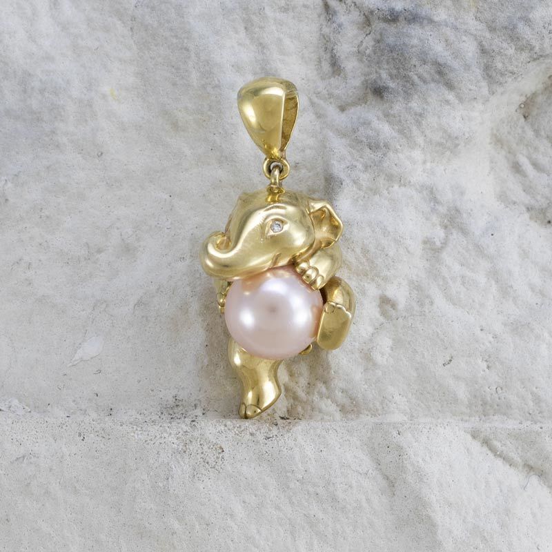 Silver Elephant Pendant with pearl from silver 925. You can choose from 18K rose or yellow gold plating for your pendant.