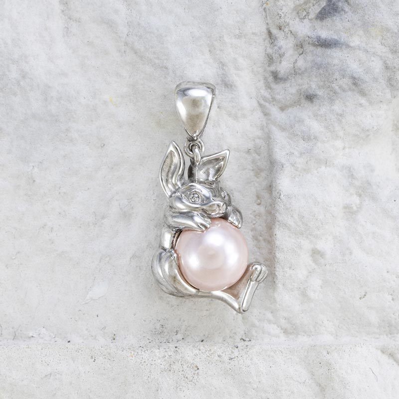 Silver Rabbit Pendant with pearl from silver 925. You can choose from 18K rose or yellow gold plating for your pendant.
